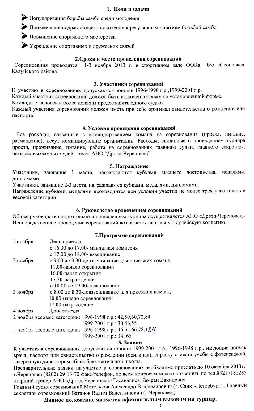 | 9-традиционный Всероссийский турнир, Вологодская область, 1-3 ноября 2013 года