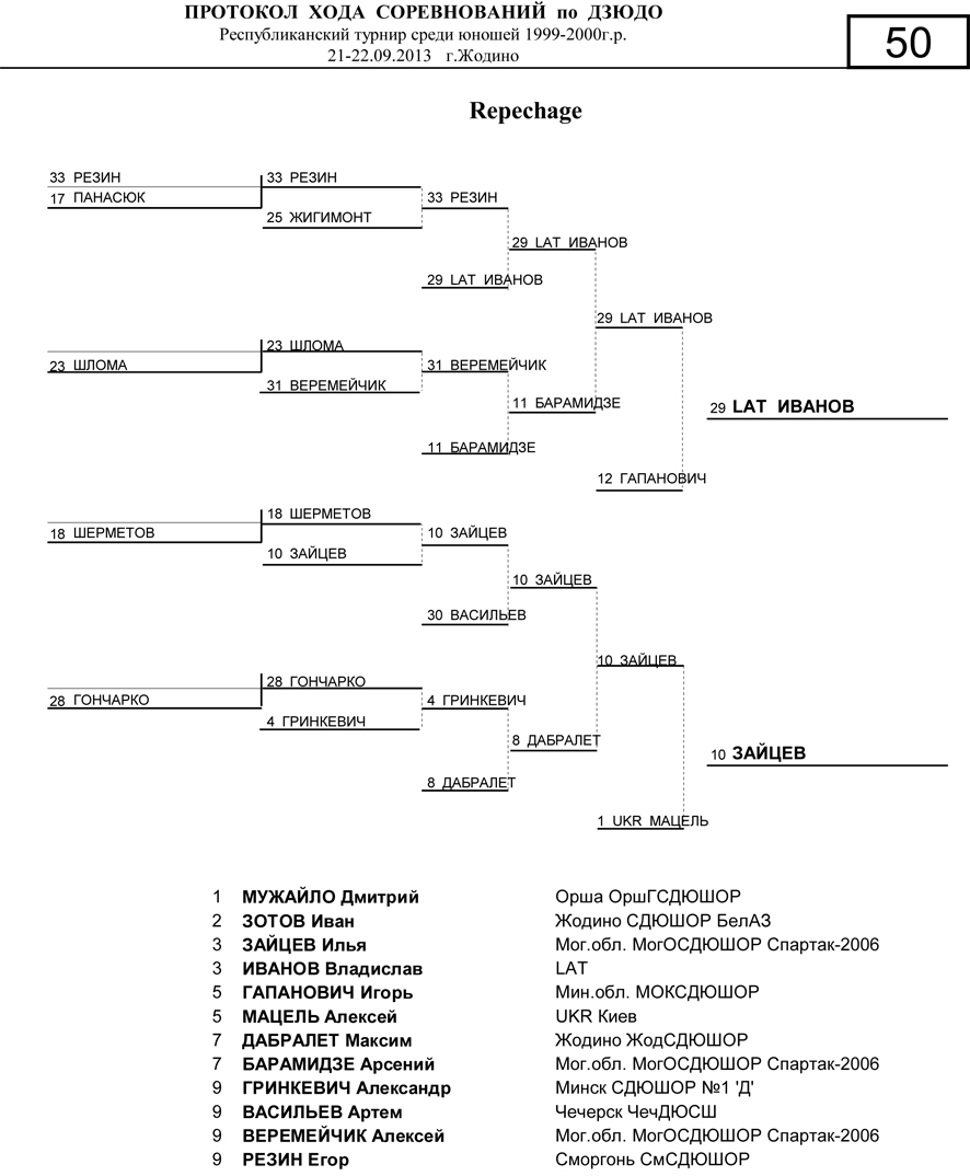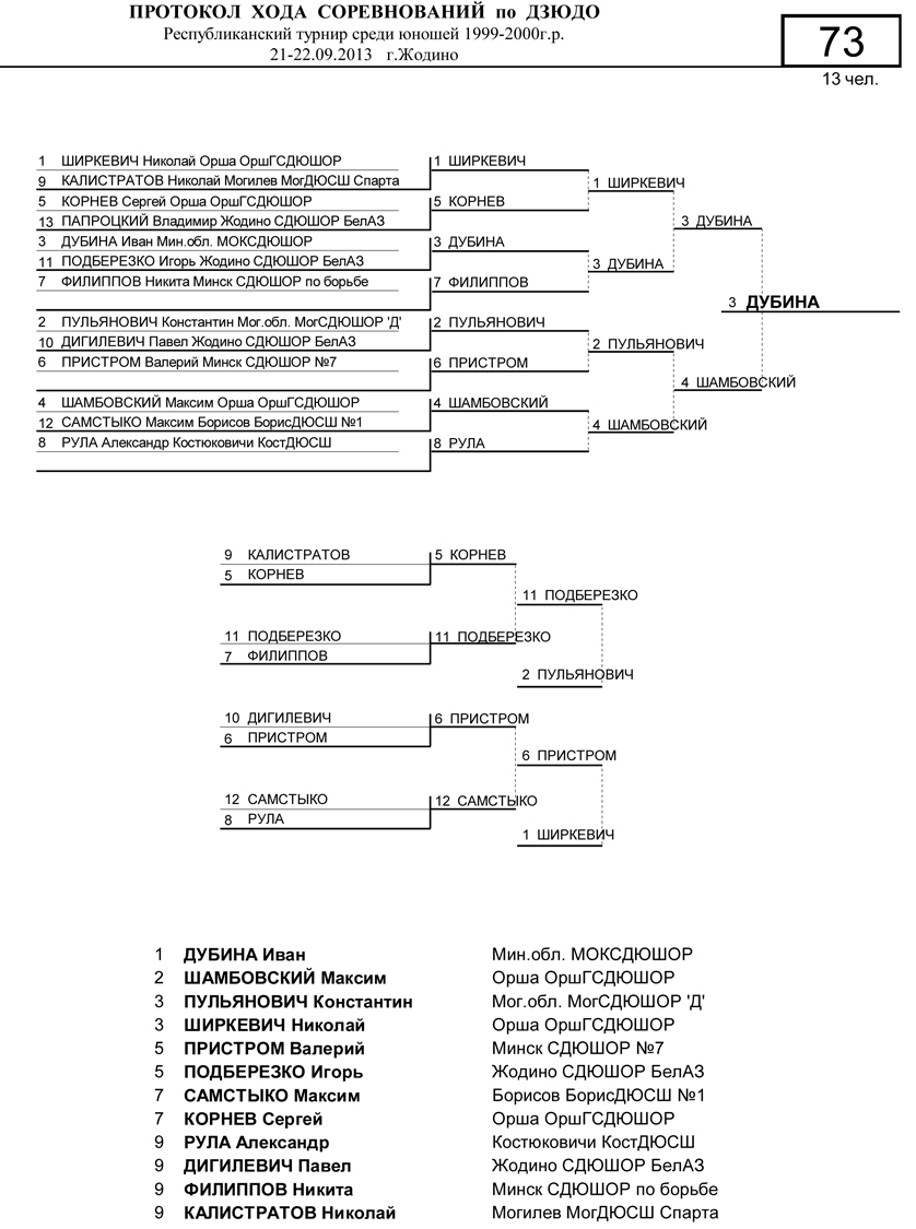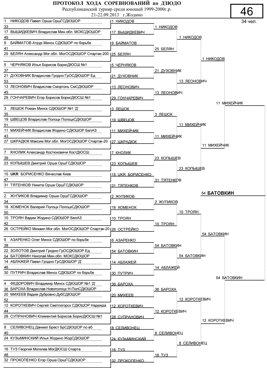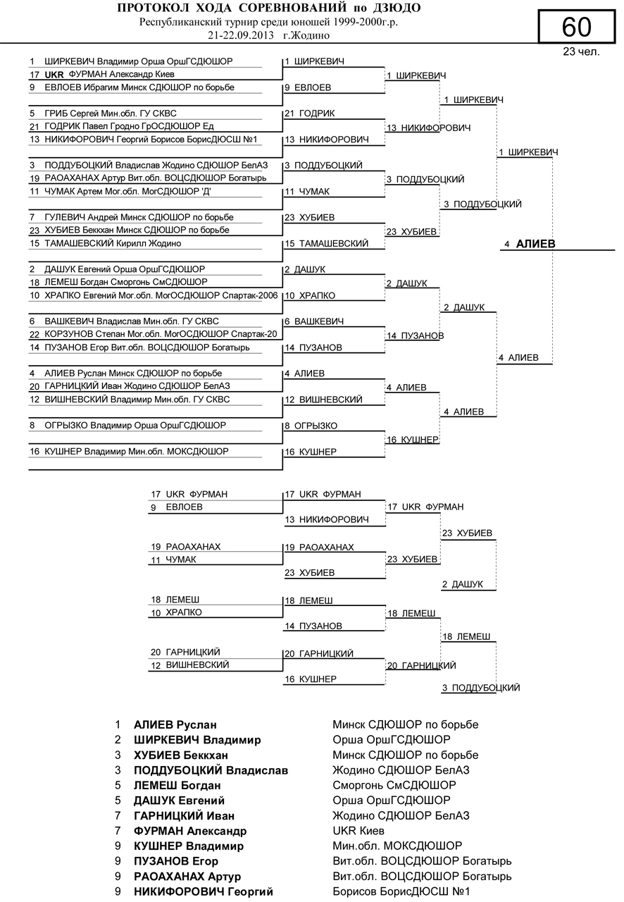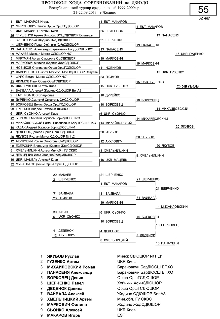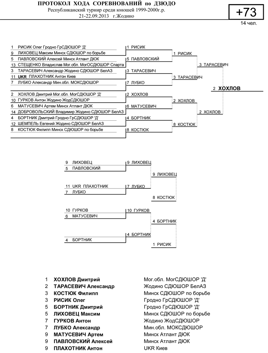 | Протоколы: -55 кг; -60 кг; -66 кг; -73 кг; +73 кг: