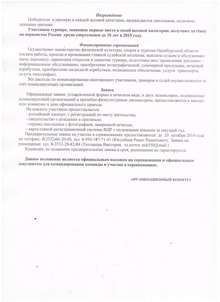 | Турнир является отборочным на Первенство РФ среди спортсменов до 18 лет в 2015 г.