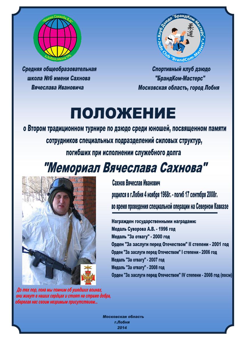 | 2-Традиционный турни по дзюдо "Мемориал Вячеслава Сахнова" среди юношей 2002-2004, 2005 -2006 г.р.