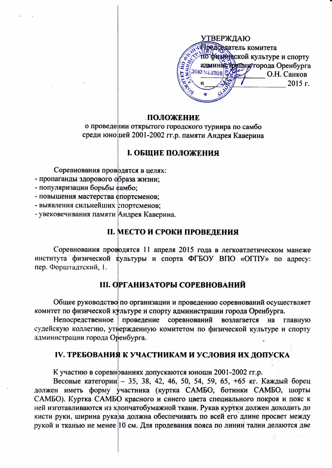 г.Оренбург 11.04.2015г. юноши 2001-03г.р.