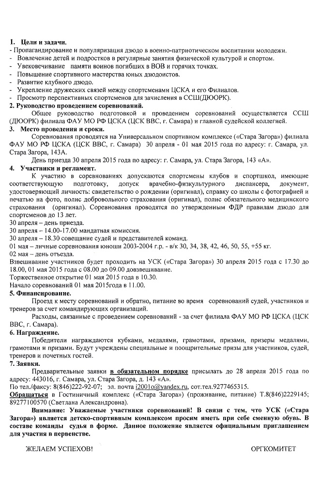 | Спортшкола ЦСК ВВС приглашает младших юношей на турнир. 30 апреля-1 мая в Самаре состоится Открытое первенство спортшколы ЦСК ВВС по дзюдо среди юношей 2003-2004 годов рождения. Мероприятие посвящается 70-летию победы в Великой Отечественной войне.