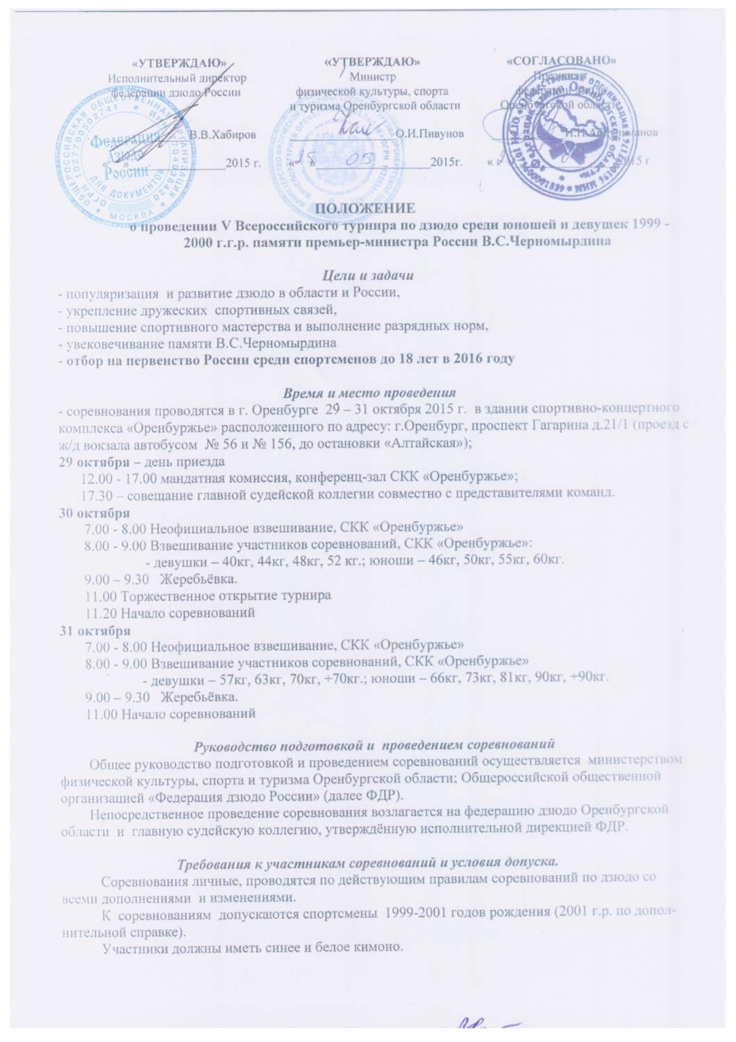 За медали мемориала Черномырдина поборются юноши и девушки 1999-2000 годов рождения. Всего будет разыграно 17 комплектов наград, победители турнира получат путевки на первенство России-2016 по дзюдо среди спортсменов не старше 18 лет.