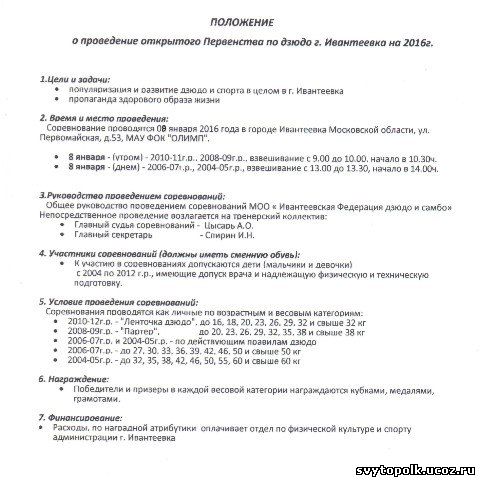 | Т.к. положение "не очень" скопировала приглашение со странички Динамо-Ивантеевка школа единоборств: