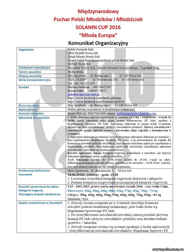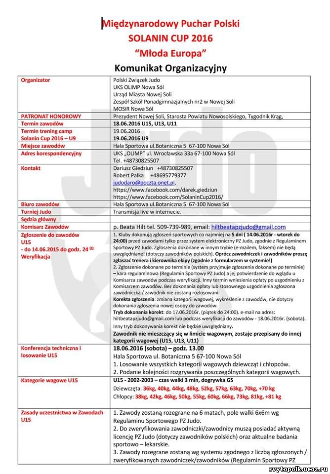 International Polish Judo Cup"Young Europe" Solanin Cup 2016
