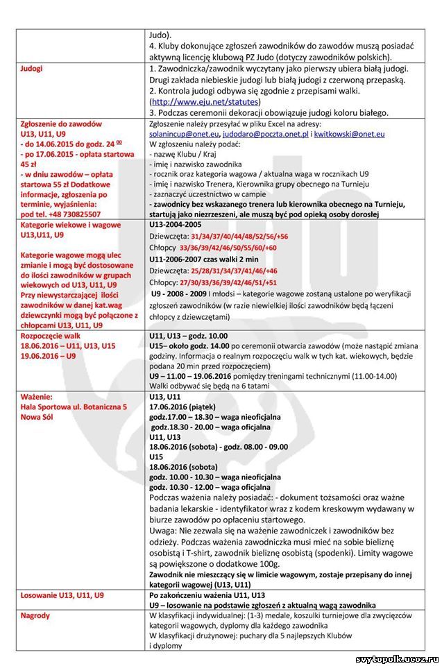 | International Polish Judo Cup "Young Europe" Solanin Cup 2016 - Nowa Sól Polska U15/ U13/ U11/ U9