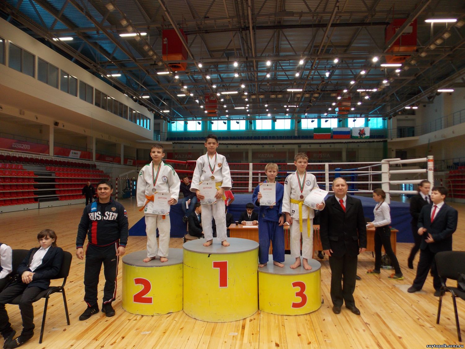 | Было около 180 участников.самые многочисленные категории:34 кг.-35 уч.,42 кг.-32 уч.,38 кг.-31 уч. Весь Татарстан,плюс Мари-Эл (Йошкар-Ола) и Ульяновская обл.(Димитровград). Пять схваток:четыре досрочно,а в финале проиграл юко своему извечному сопернику в республике.Но бился.Нормально.