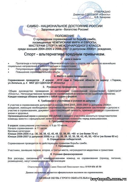| Цитата zubkov (  ) Николай Николаевич. Он местный. Часто с ним на соревнованиях пересекаемся. zubkov ты не поверишь, но ТОТ ТРЕНЕР ИЗ СШ, который орал на тебя и Главного судью - ЭТО ТРЕНЕР ИЗ СШ Г.тОРЖКА (СЕРЕЖА ПЕТРОВ), ГДЕ ДИРЕКТОРОМ СШ ЯВЛЯЕТСЯ кто??????? ты не догадался???))) Николай Николаевич Савинов))))))))))) ржу не могу...тебя развели как мальчика))), а если хочешь серьезно? отвечу: