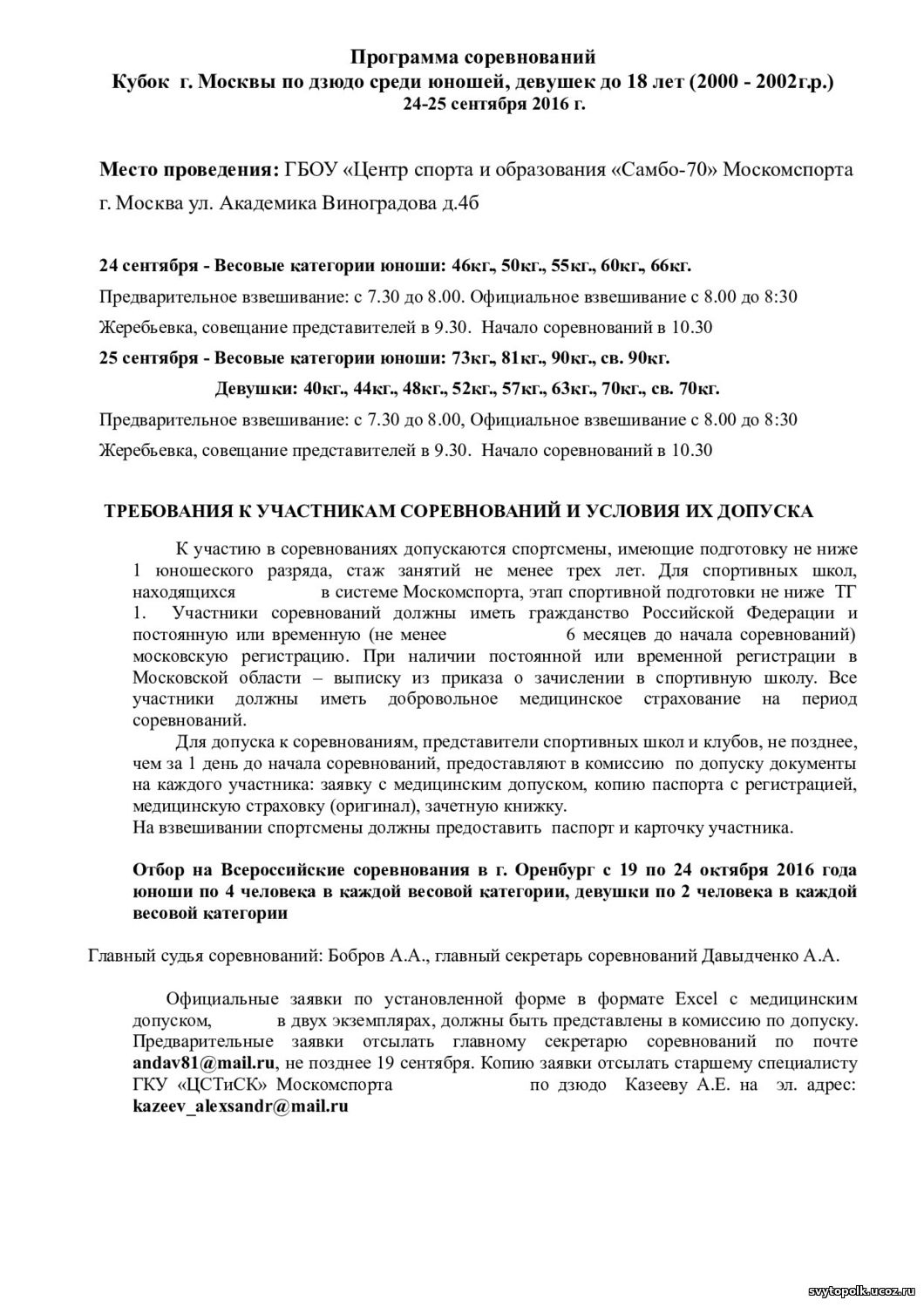 | РЕЗУЛЬТАТЫ Кубок Москвы по дзюдо 24.09.2016 - 25.09.2016