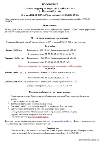 | Для удобства участников "Заявку на соревнования" можно заполнить и отправить на сайте клуба http://www.judorgais.ru/index/0-13