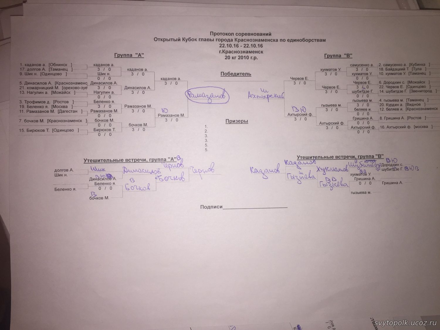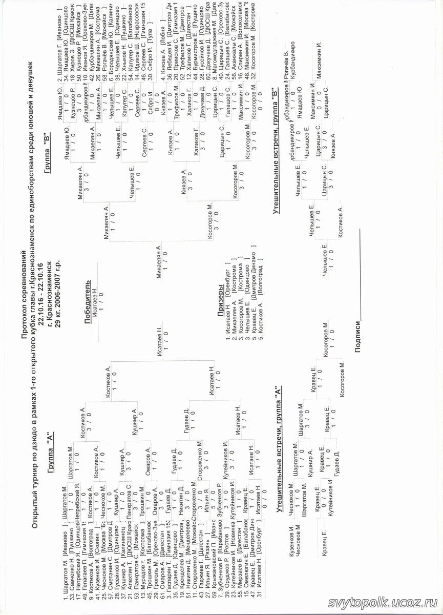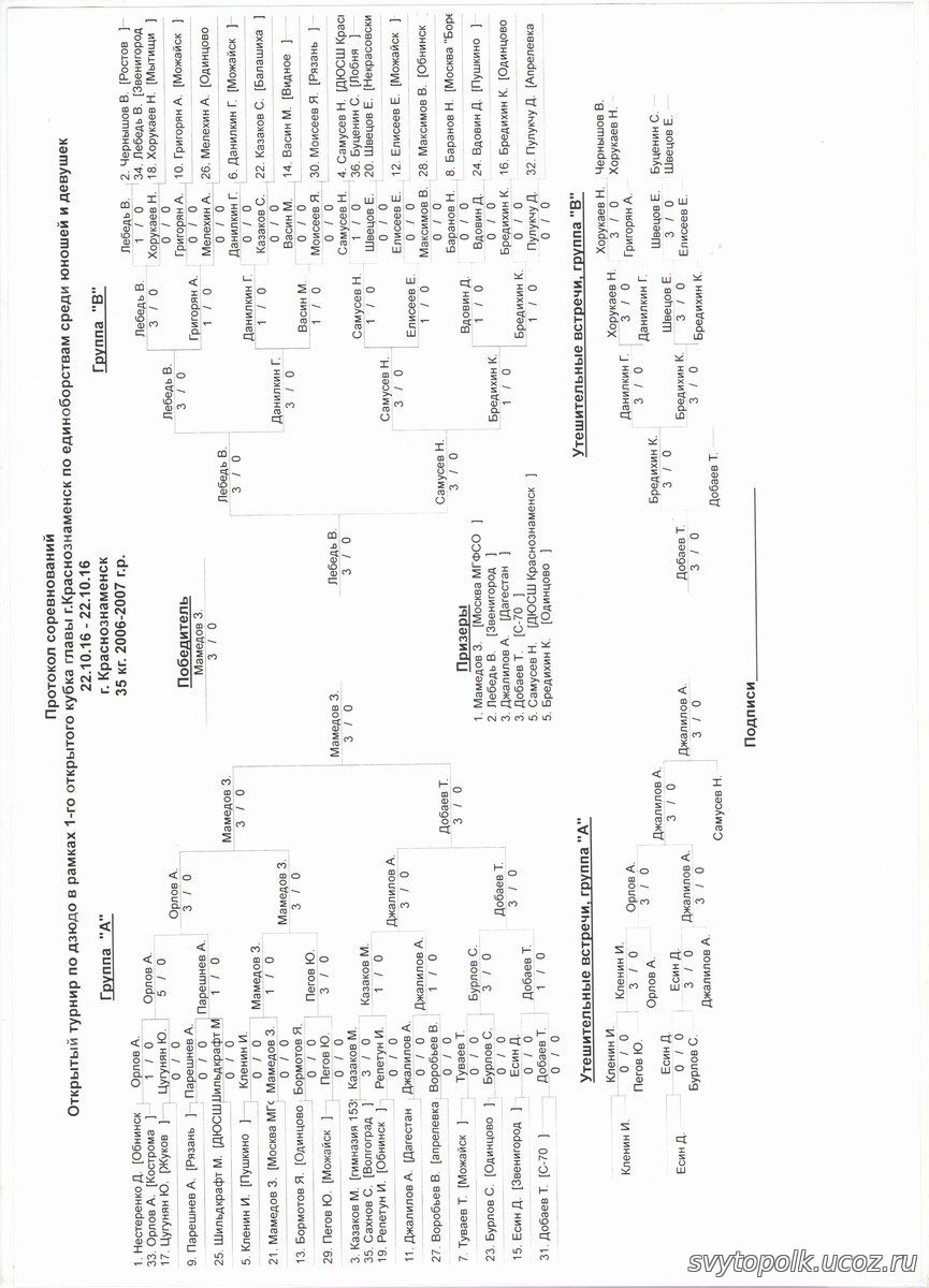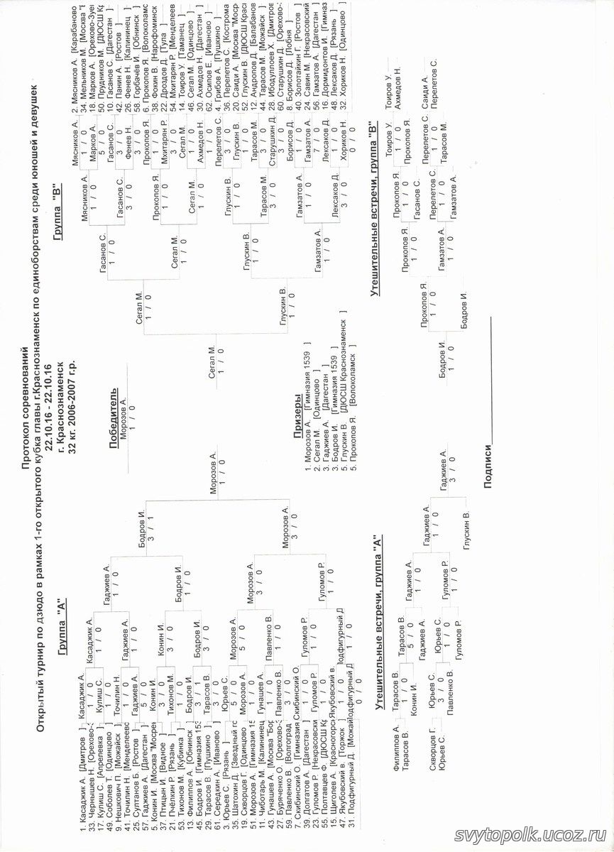 | Спасибо. Не хватает для полного счастья самых маленьких по дзю-до. 2010 год... Ну и может еще кого. Такие у Вас есть протоколы?