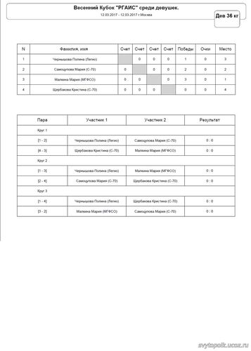 | 12.03.17  Весенний Кубок "РГАИС" |