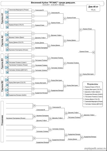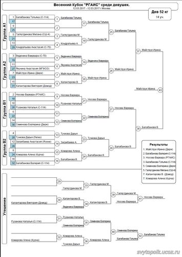 | armenmarti | Дата: Понедельник, 13.03.2017, 20:21 | Сообщение # 73 |  | тренер и судья Группа: Друзья Сообщений: 115 Статус: Offline | Протоколы 2002-2004 (52 кг)