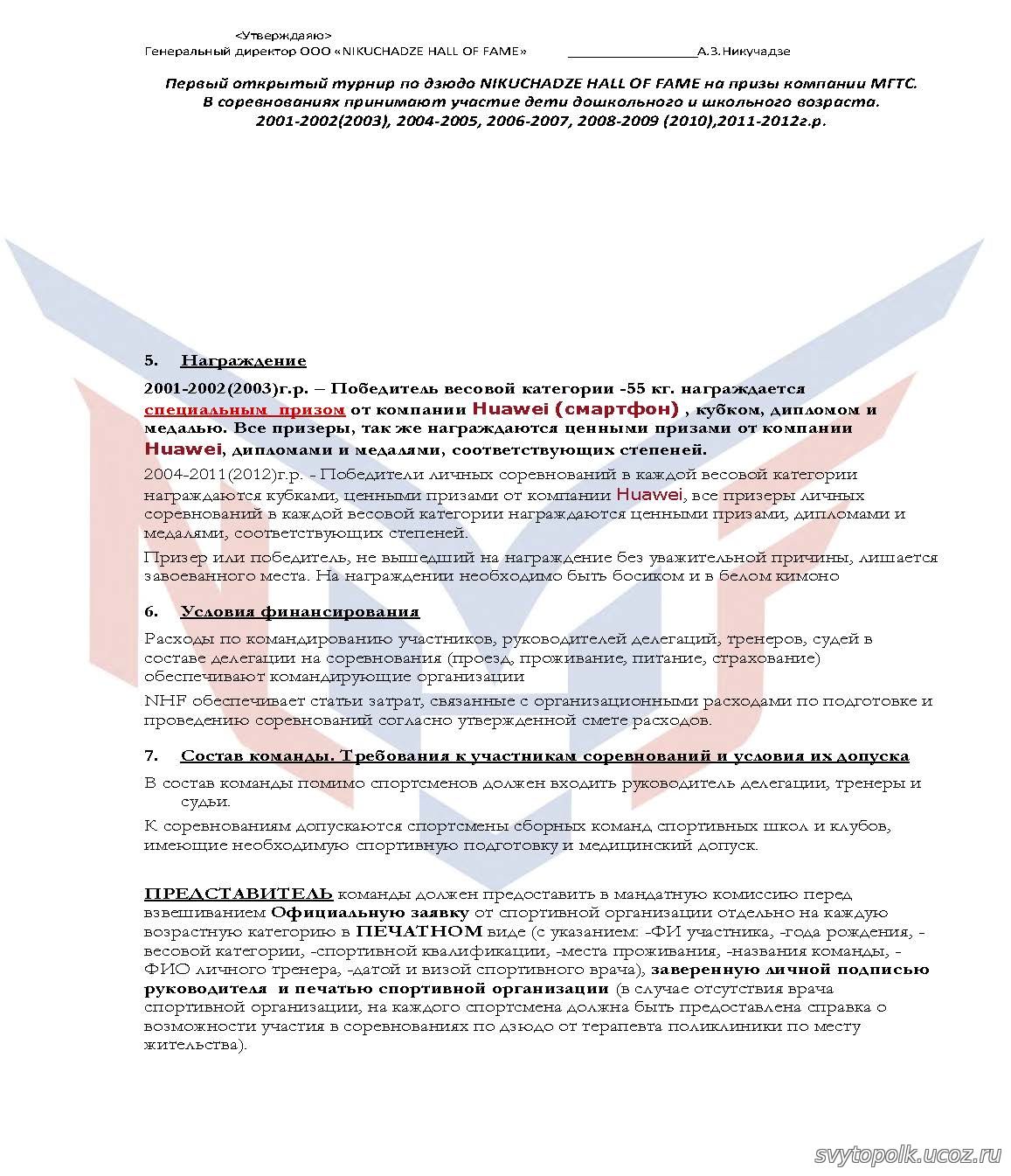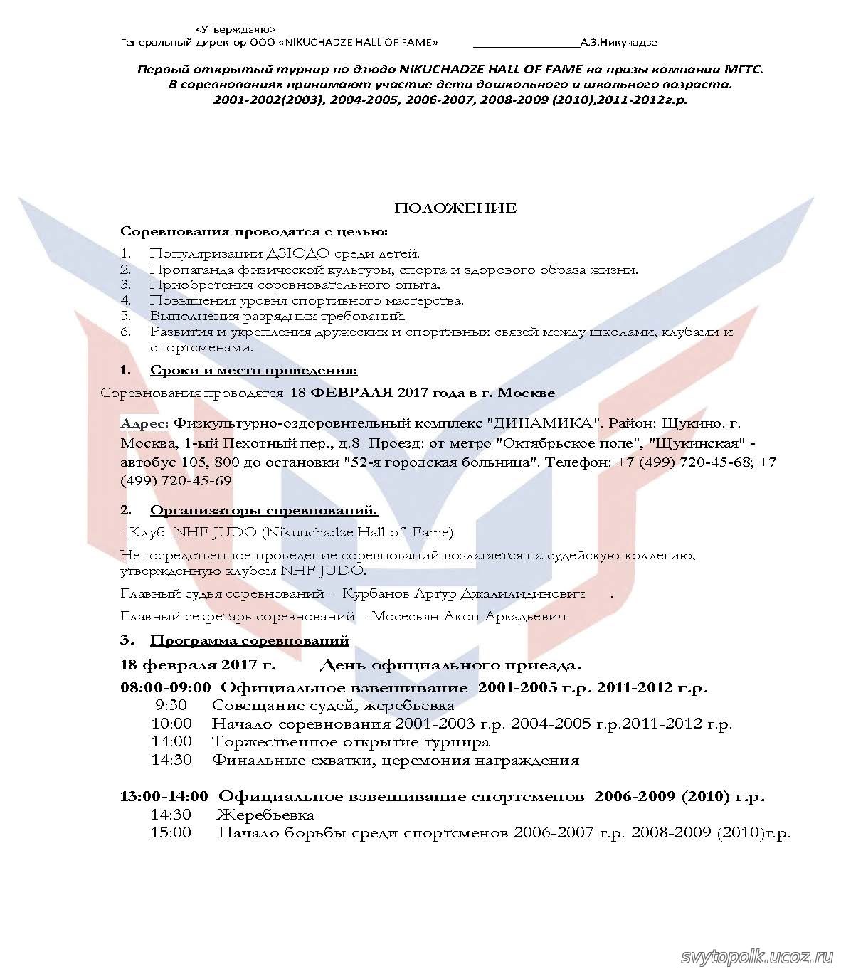 | Первый открытый турнир по дзюдо NIKUCHADZE HALL OF FAME на призы компании МГТС.
