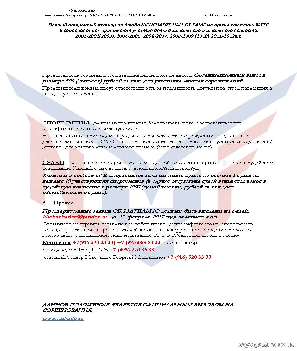 1 открытый турнир NIKUCHADZE HALL OF FAME 18.02.2017