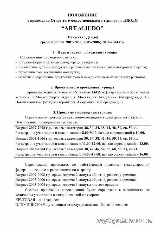Планируется мощный, качественный турнир, красивые медали, призы. На базе одного из лучших спортивных комплексов для единоборств в г. Москве. Современный, просторный, оборудованный комплекс, около 400 посадочных мест. Не так уж часто проводятся турниры для детей в таком формате и на таких спортивных площадках. Я вижу два пути :
