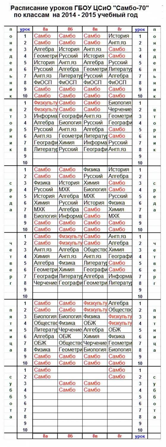 | Расписание занятий для примера - восьмые классы (спортивные):