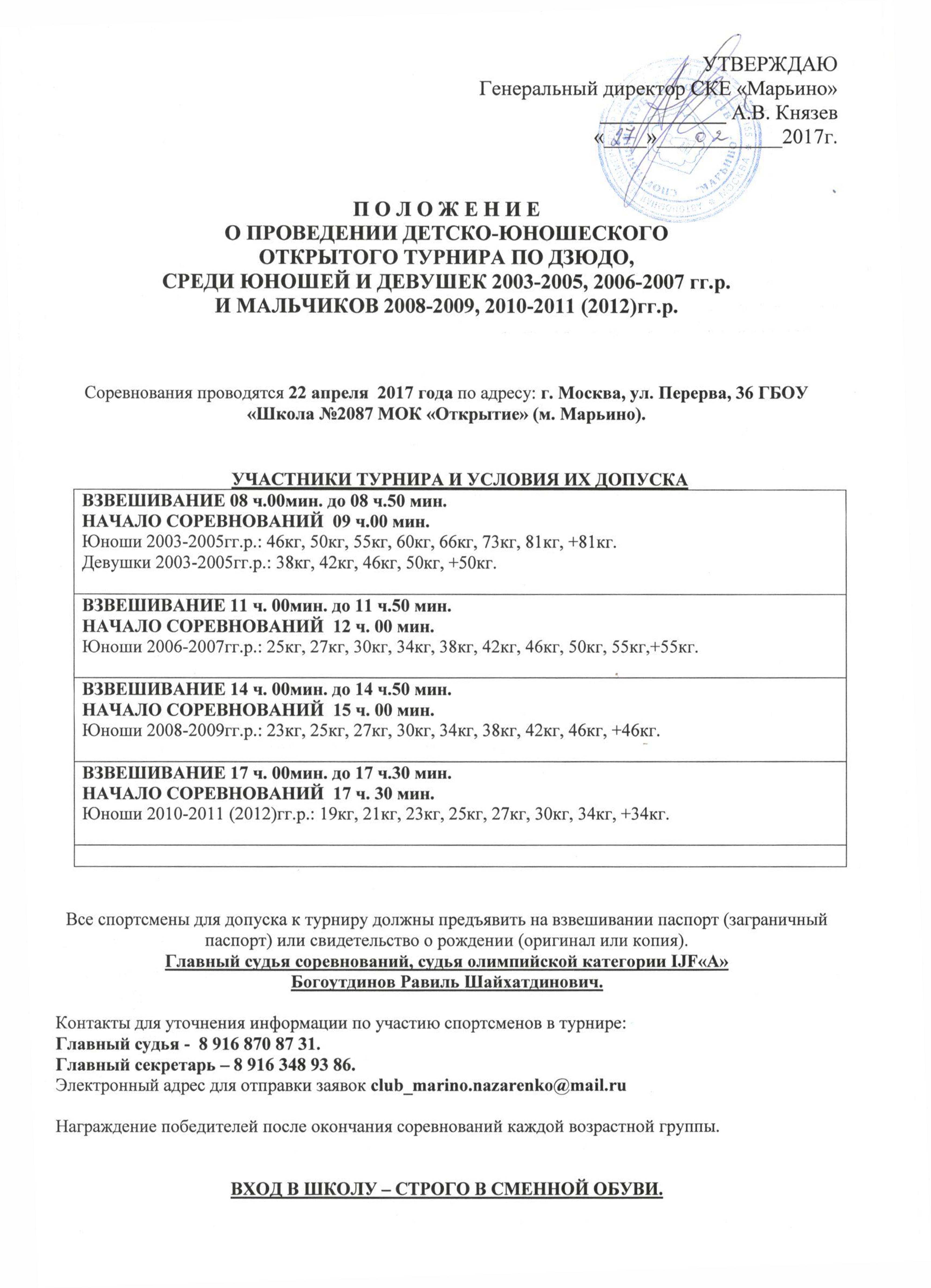ВЗВЕШИВАНИЕ 11 ч. 00мин. до 11 ч.50 мин. НАЧАЛО СОРЕВНОВАНИЙ 12 ч. 00 мин. Юноши 2006-2007гг.р.: 25кг, 27кг, 30кг, 34кг, 38кг, 42кг, 46кг, 50кг, 55кг,+55кг.